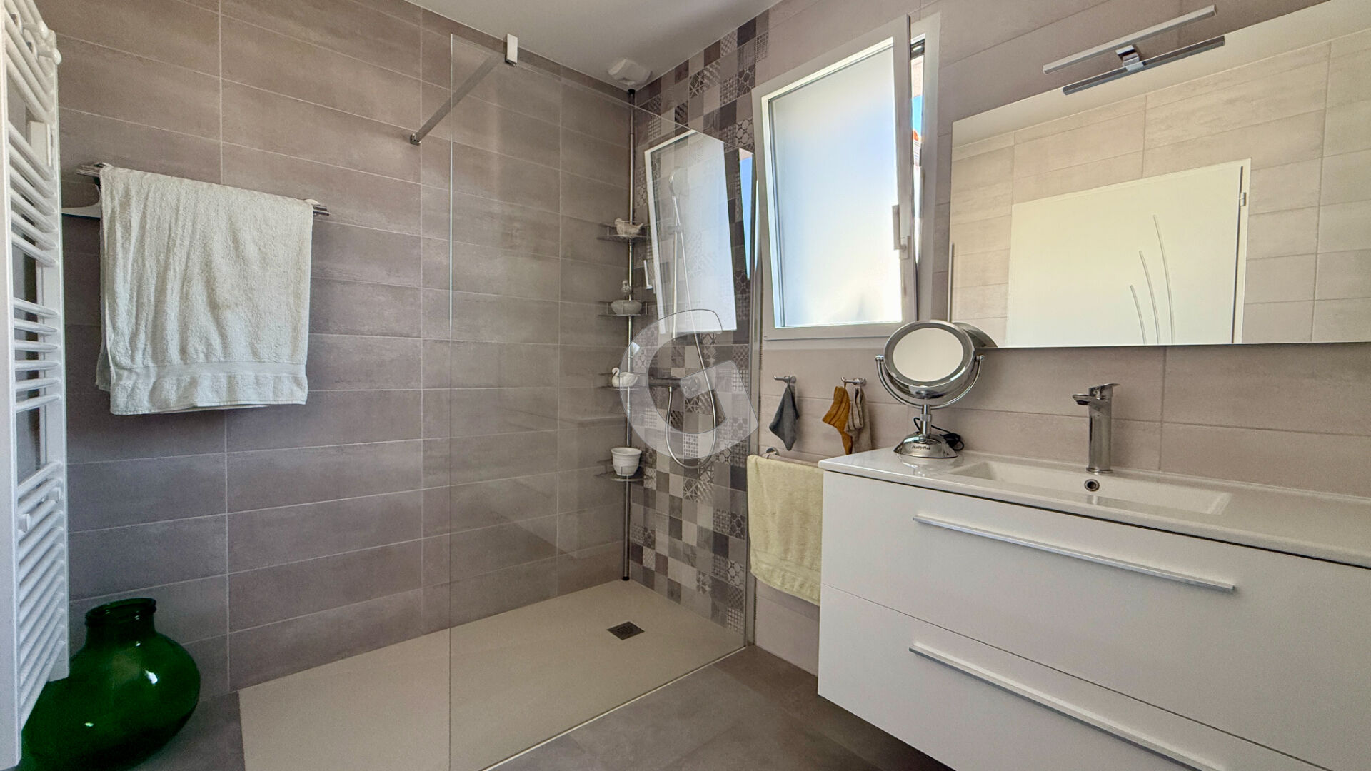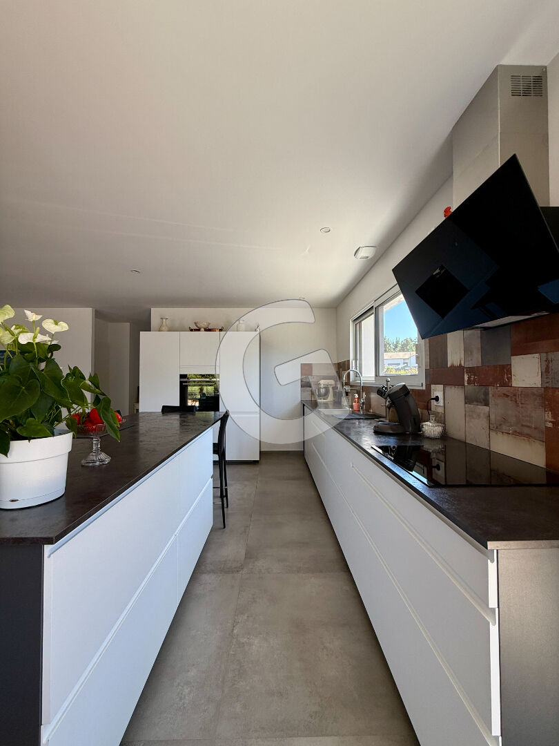 Deux terrasses dont une avec préau, béton poreux pour le stationnement, portail motorisé complètent cette maison dernière génération avec des prestations de qualités.