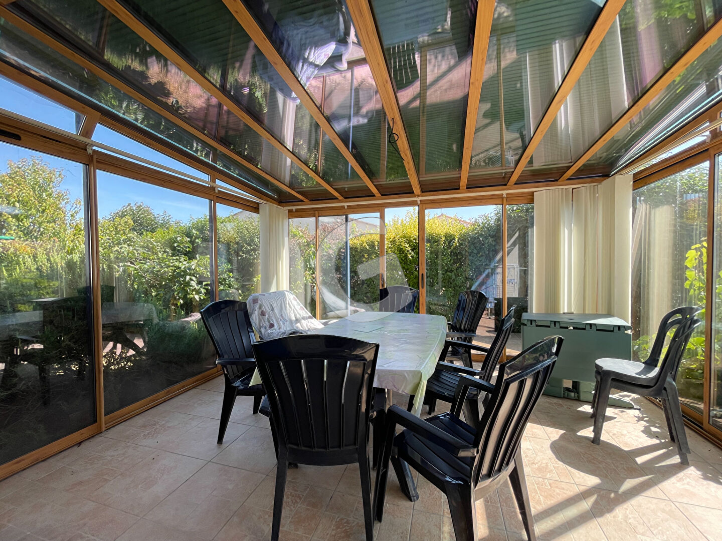 Maison à vendre proche des commerces d'Angles et à 10 minutes des plages comprenant: une belle pièce de vie donnant sur une véranda et une cuisine, trois chambres spacieuses, une salle de bains, un garage. Le tout sur un terrain de 547m².
