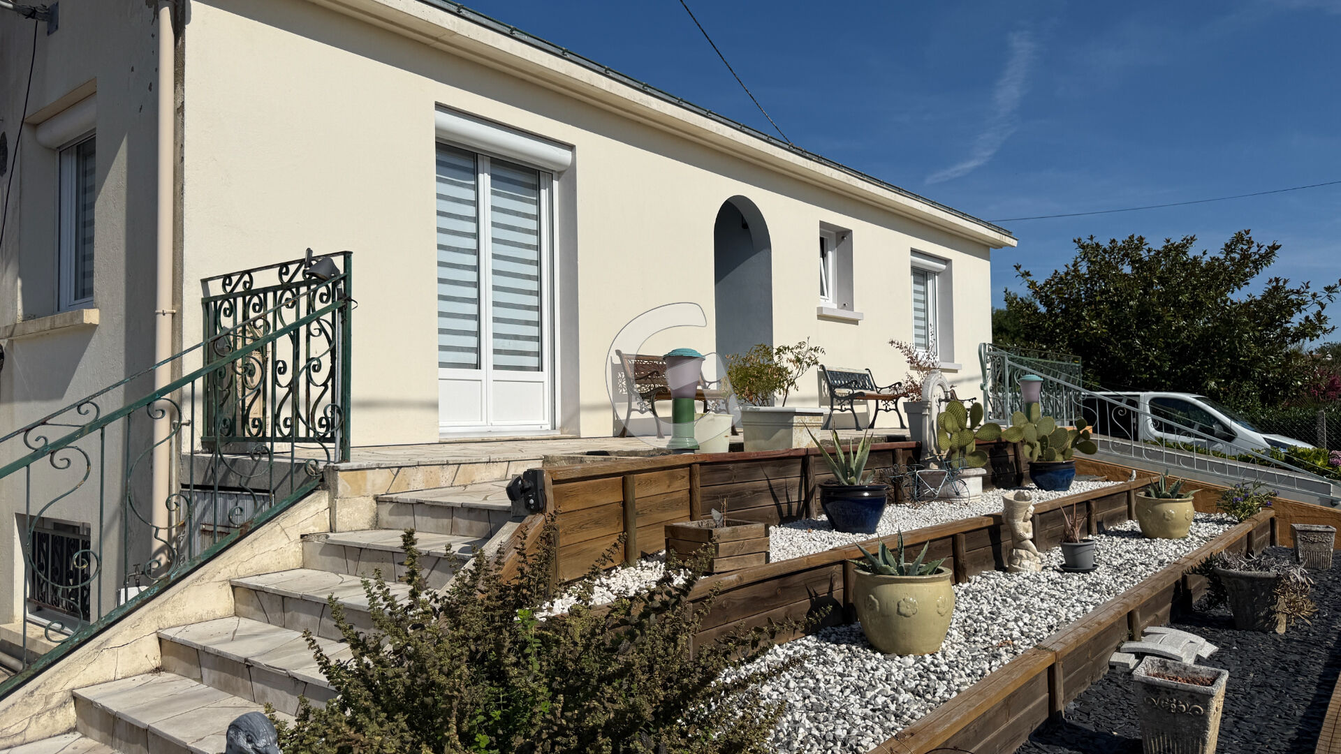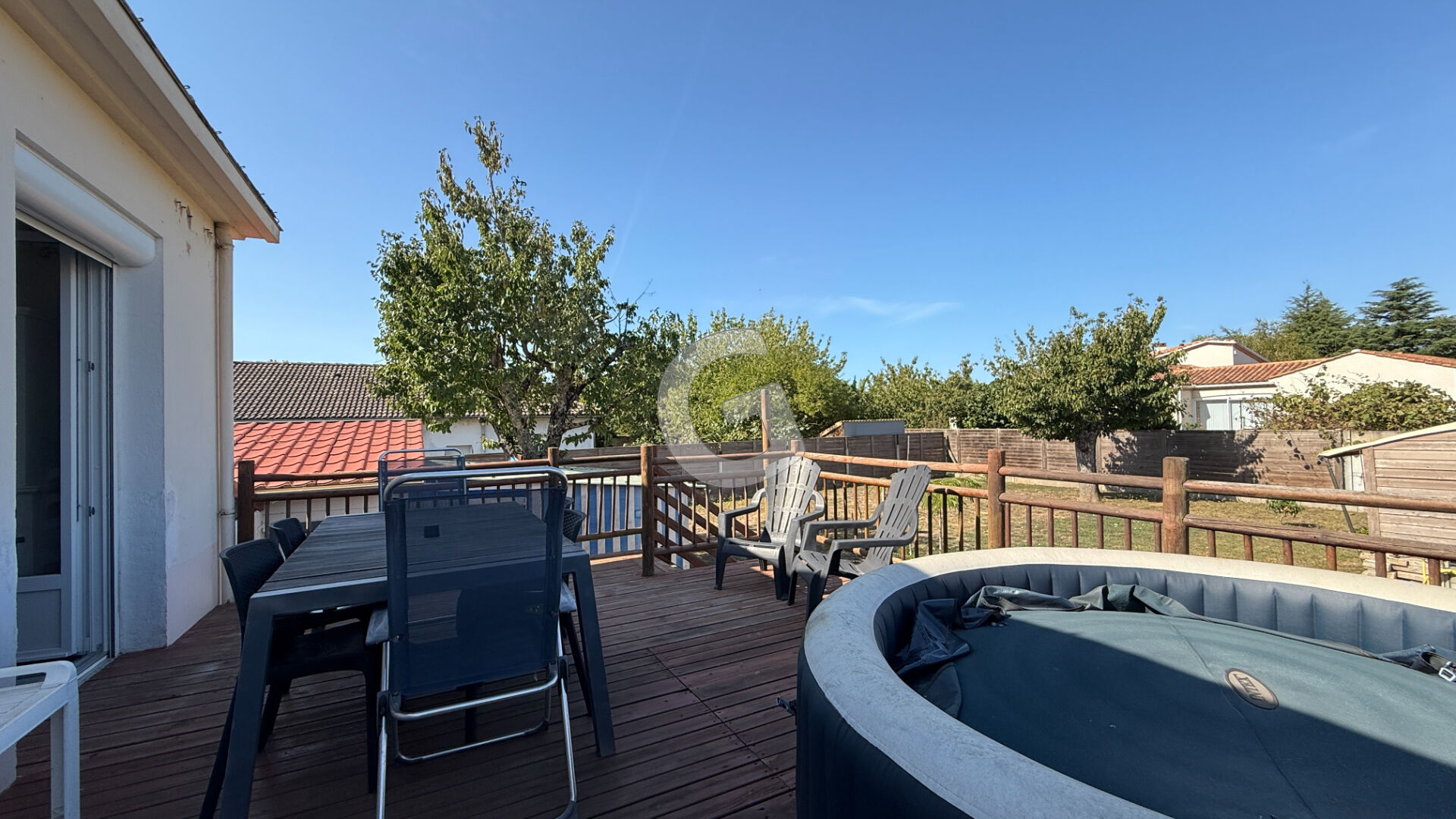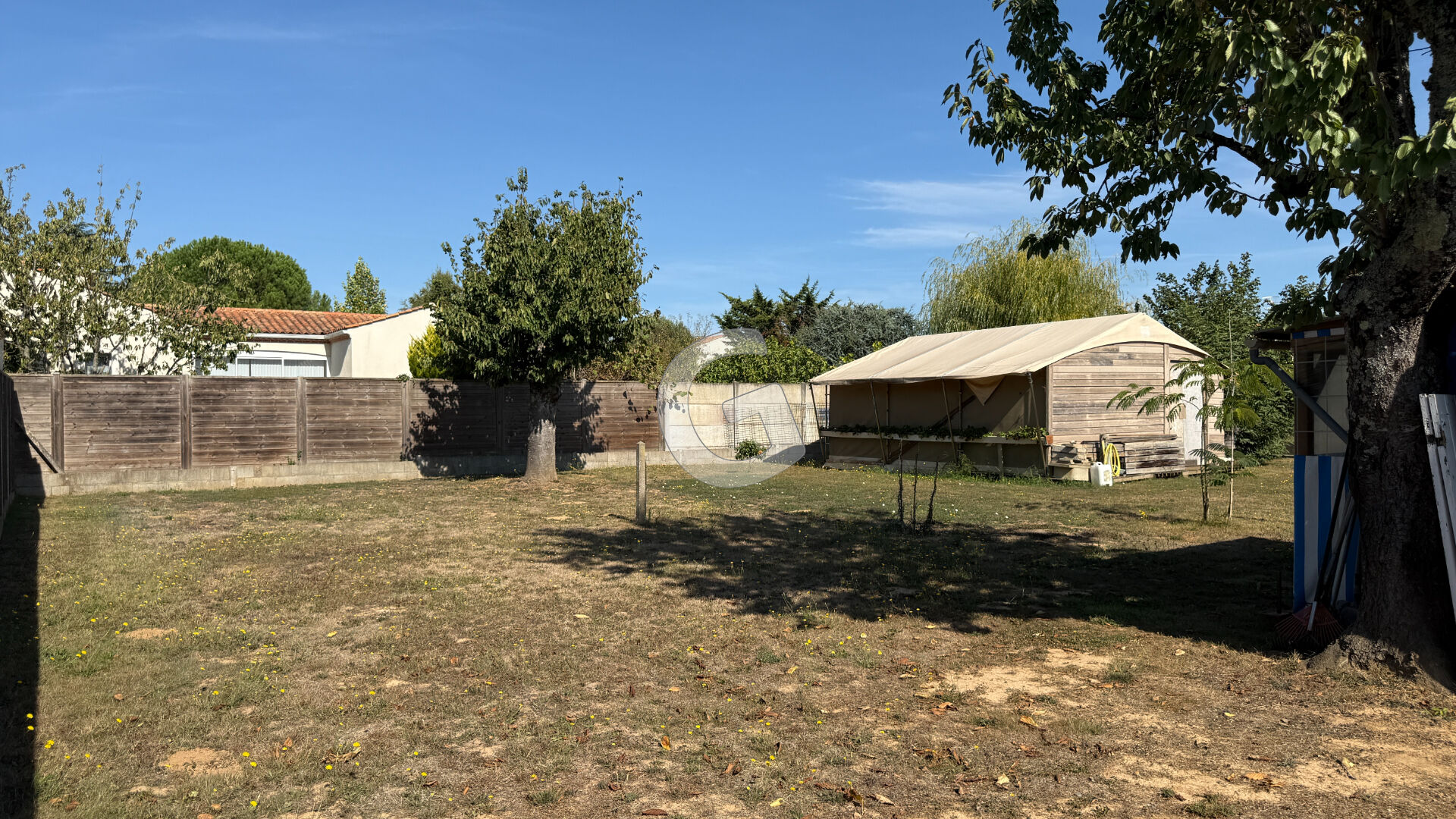 Le jardin, entièrement clos et arboré, offre plusieurs accès véhicules et un terrain de pétanque.