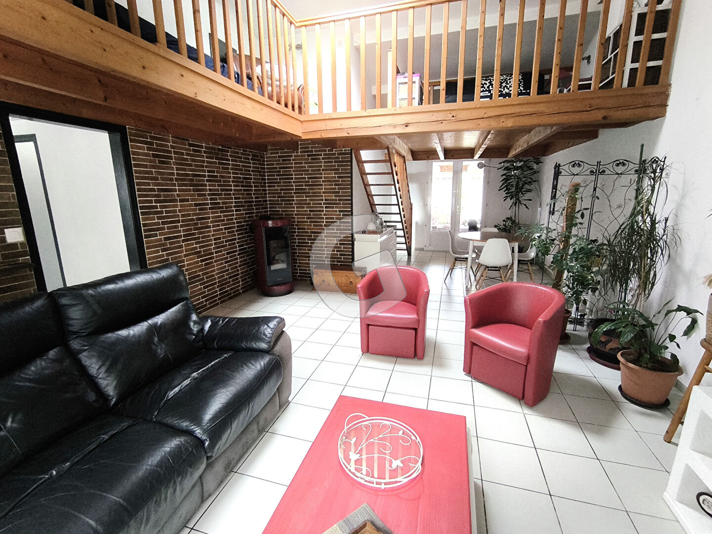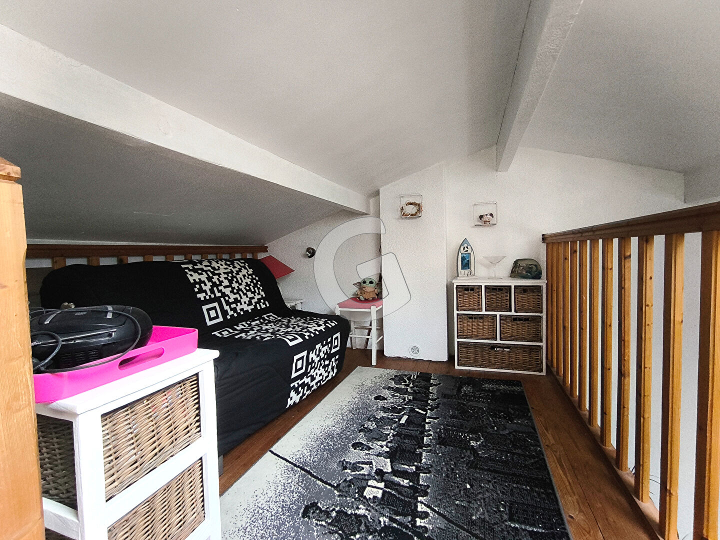 A l'étage : mezzanine donnant sur le salon (couchage possible).