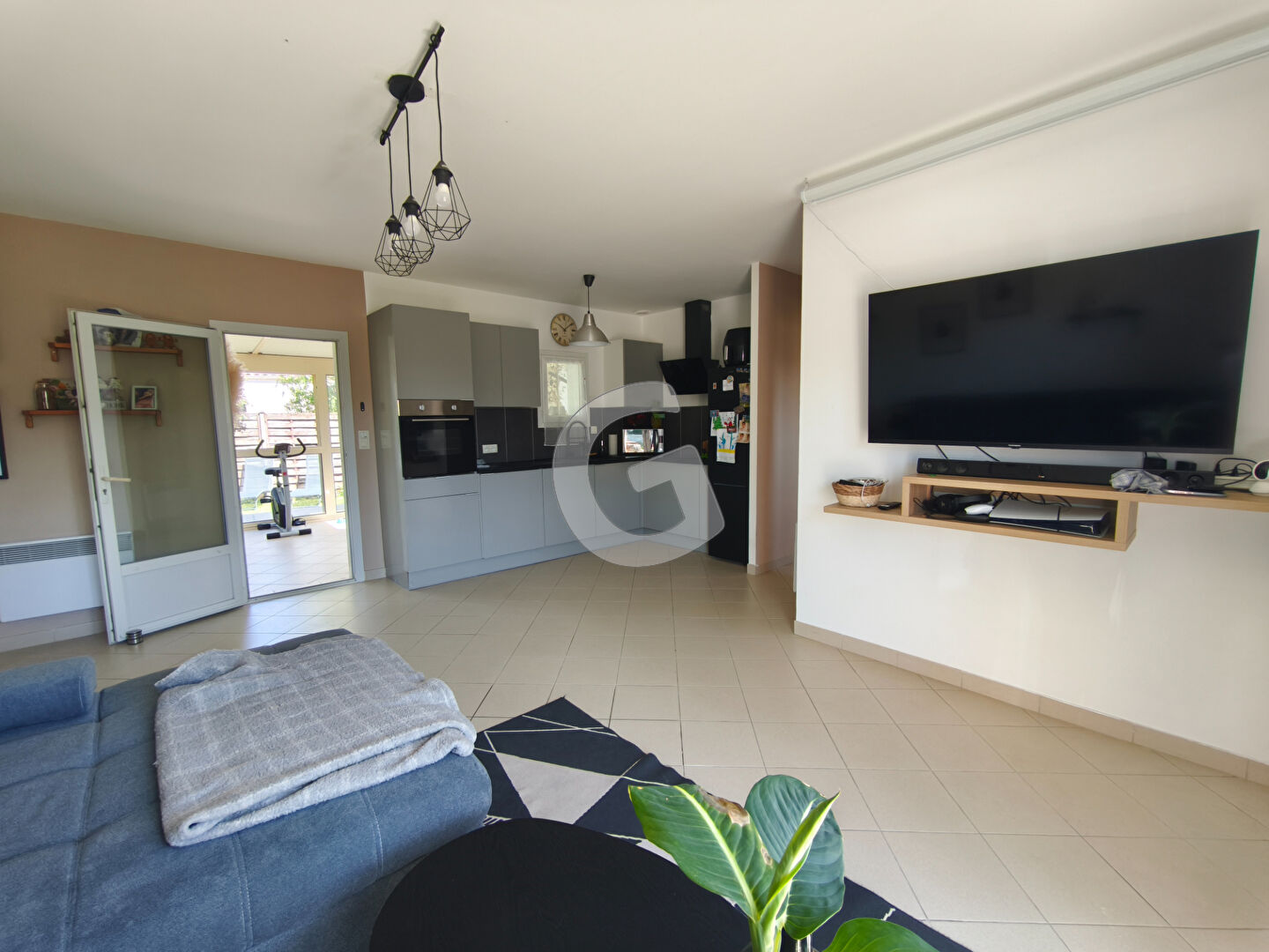Elle se compose d'une cuisine américaine aménagée et équipée, ouverte sur un lumineux salon-séjour, offrant un bel espace de vie convivial.