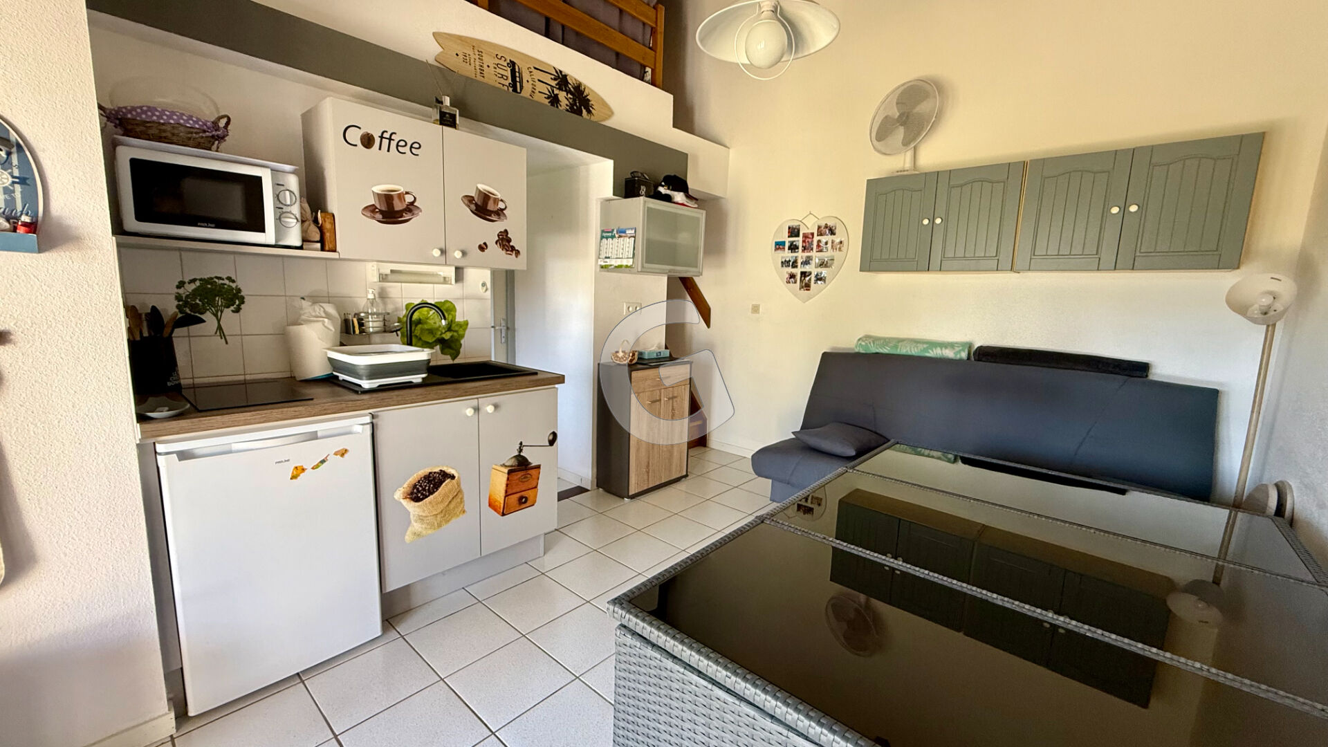 * une pièce de vie avec sa cuisine aménagée