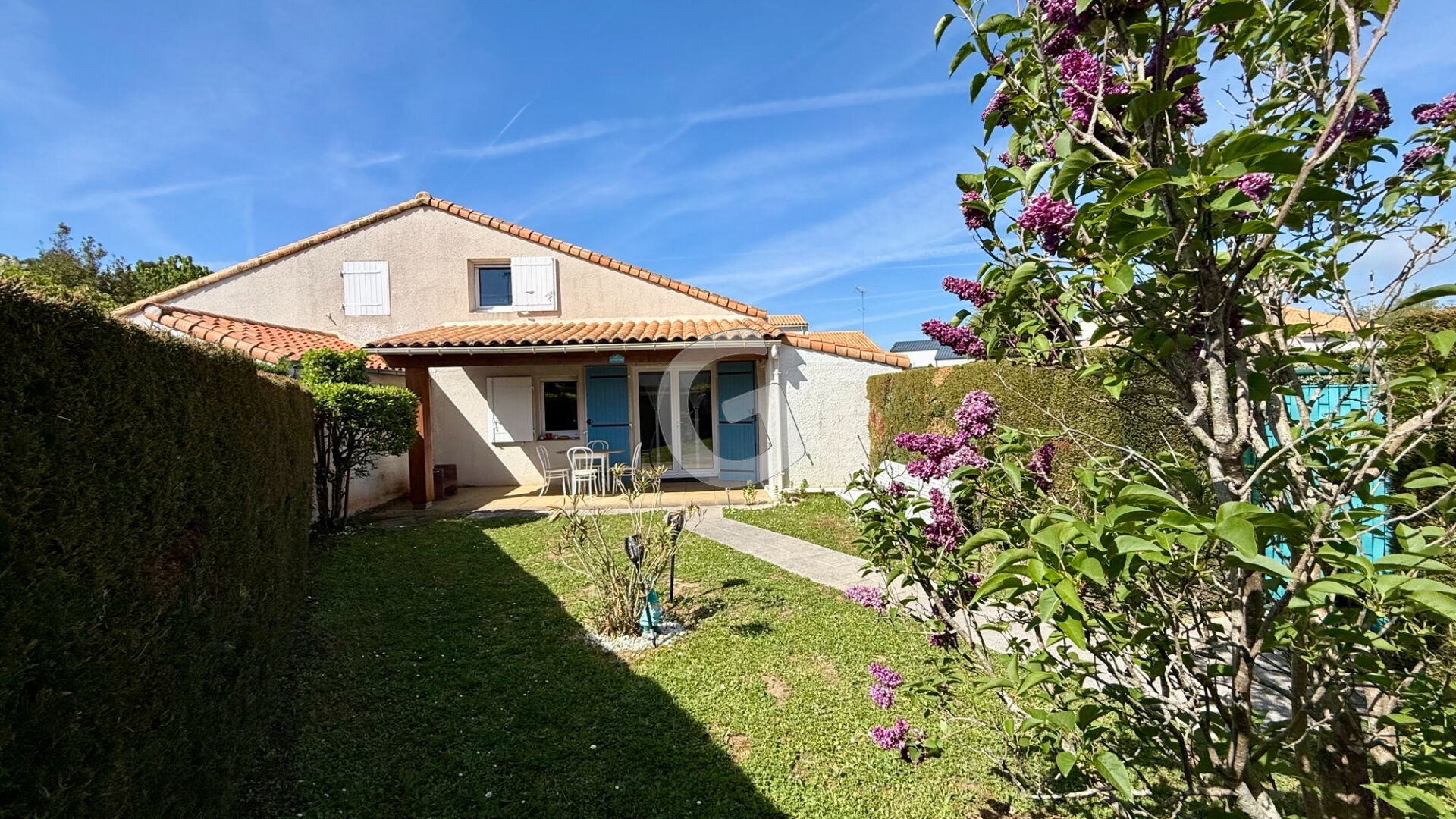 A l'extérieur une terrasse sous préau, un cellier et un jardin privatif sans vis-à-vis.